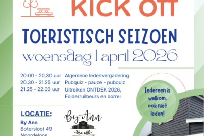 Het nieuwe toeristische seizoen staat voor de deur, en dat vieren we samen! Op woensdag 1 april nodigen we jullie uit voor een inspirerende avond bij By Ann in Noordeloos waar we niet alleen onze algemene ledenvergadering houden, maar ook feestelijk het toeristisch seizoen 2026 aftrappen.