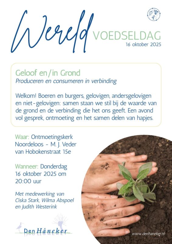 Welkom! Boeren en burgers, gelovigen, andersgelovigen en niet-gelovigen: samen staan we stil bij de waarde van de grond en de verbinding die het ons geeft. Een avond vol gesprek, ontmoeting en het samen delen van hapjes.